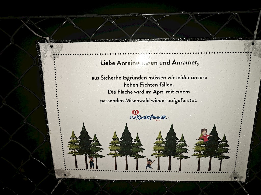 Dadurch hat sich die Leitung der Kinderfreunde lobenswerterweise entschlossen, der Gefahr für Mensch und Sachwerte vorzubeugen und den Altbestand der Bume zu erneuern. Deshalb werden diese nun gefällt und in der Pflanzsaison wird ein Mischwald mit 60 verschiedenen Bäumen gesetzt.