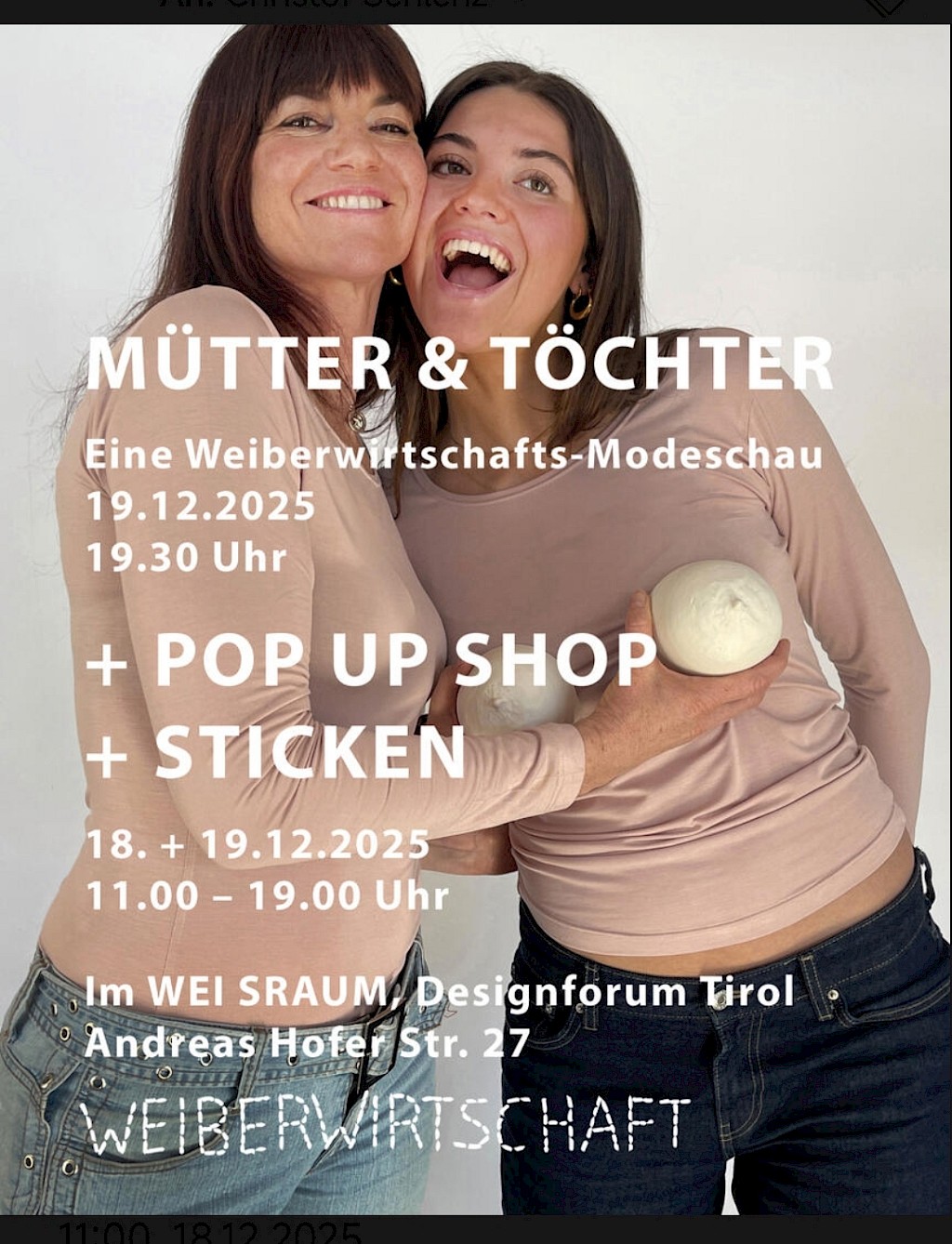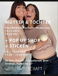 +POP UP SHOP + STICKEN 18.+19.12.2025 11.00-19.00 Uhr Im WEISRAUM, Designforum Tirol Andreas Hofer Str. 27 WEIBERWIRTSCHAFT