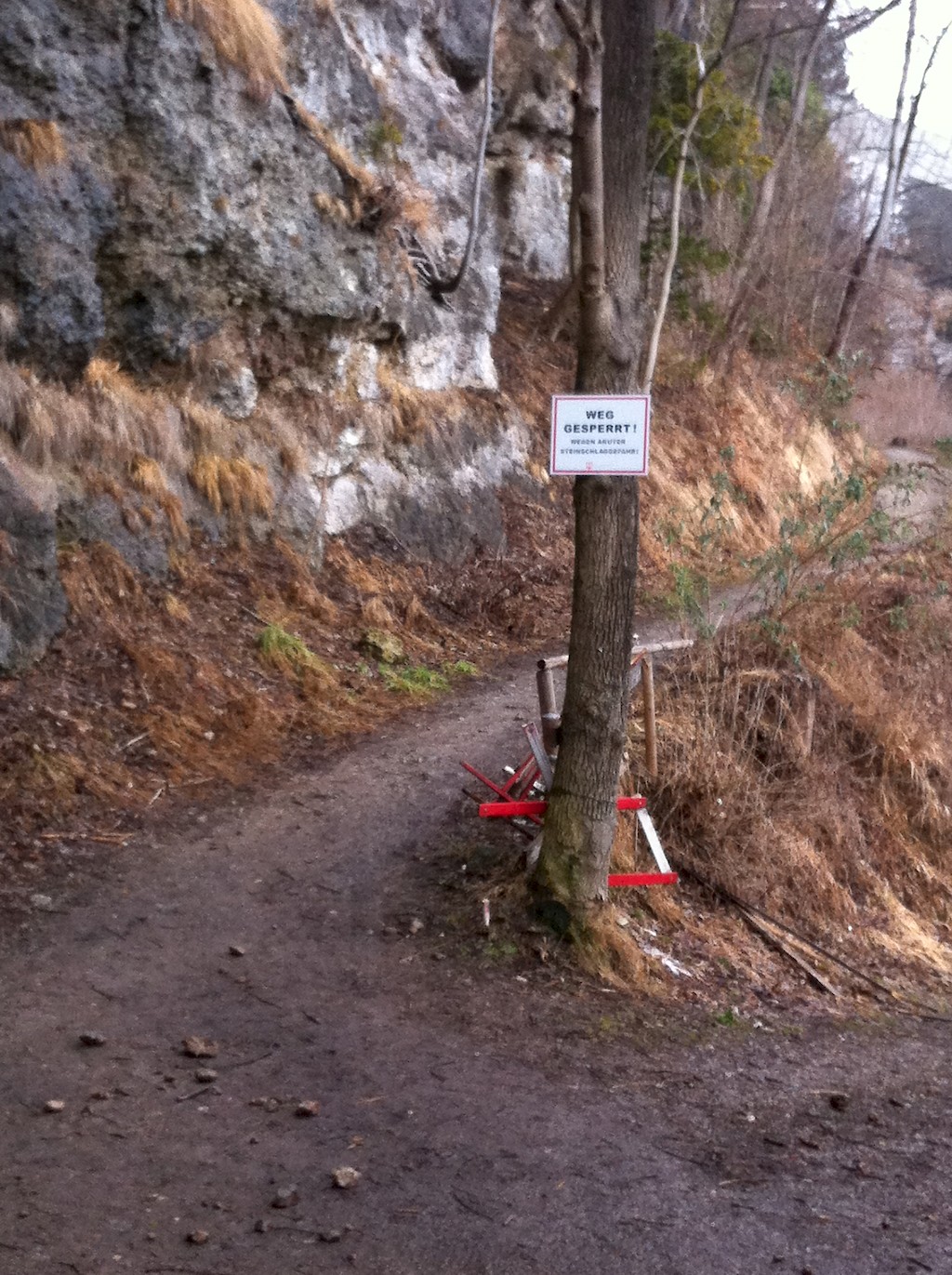 Trotz Hinweisschildern und Absperrung erfreute sich dieser Verbindungsweg unterhalb des Hungerburgplateaus ungebrochener Beliebtheit.
