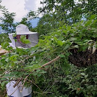 Ein Bienenschwarm siedelte direkt beim Notausstieg der Hungerburg Bahn und blockierte diesen für eine etwaige Evakuierung der Fahrgäste bei Notstopp der Bahn.