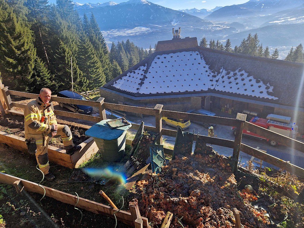 Ein Brandalarm führte uns auf die Umbrüggler Alm, zum Glück war der Schwelbrand durch mehrere Kameraden, die im nahegelegenen Wald arbeiteten, "vorgelöscht" worden und somit musste nur mehr Rest gelöscht werden.