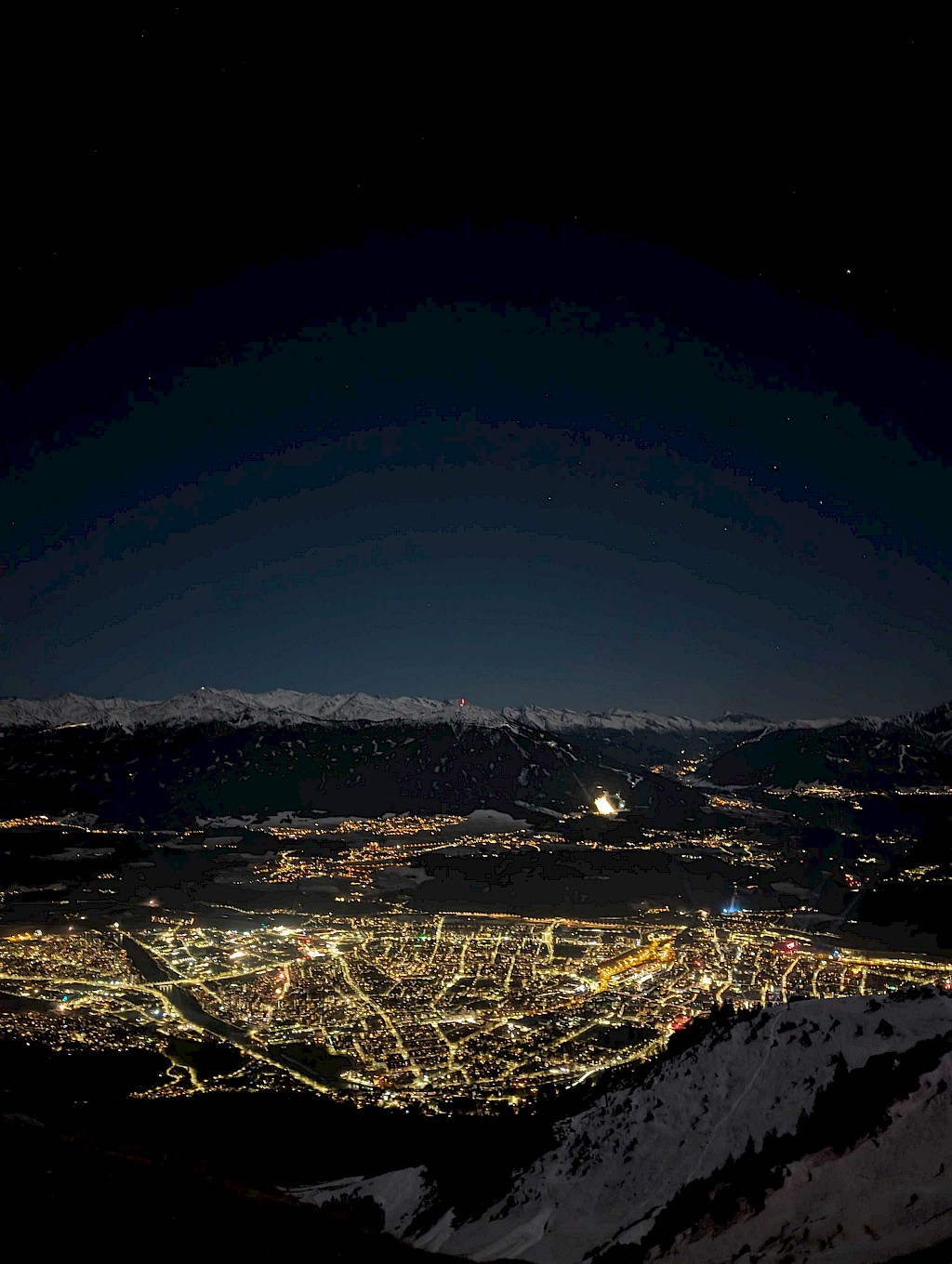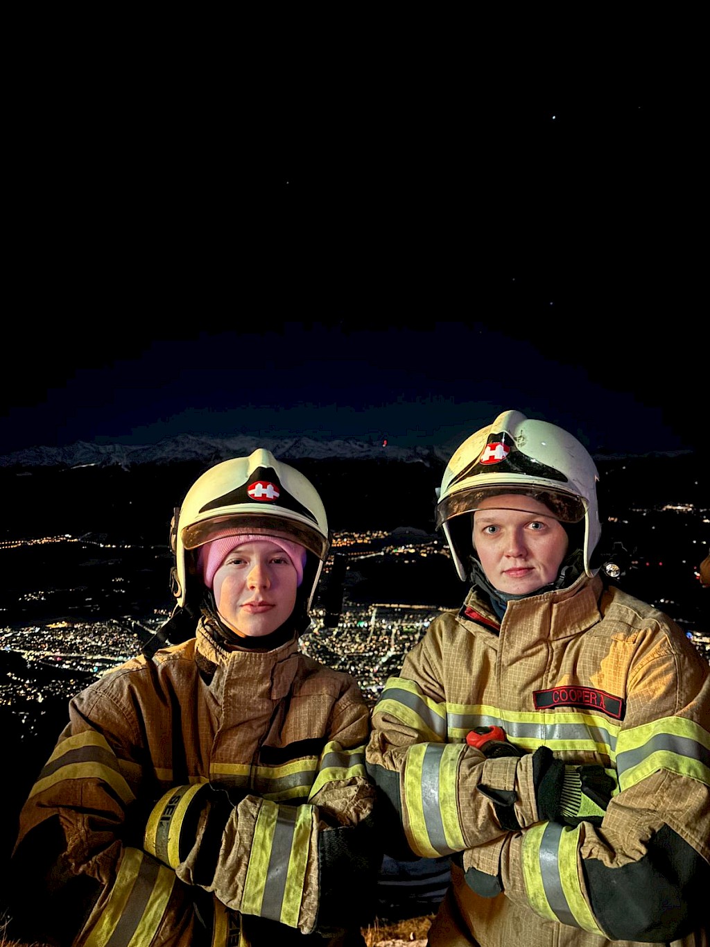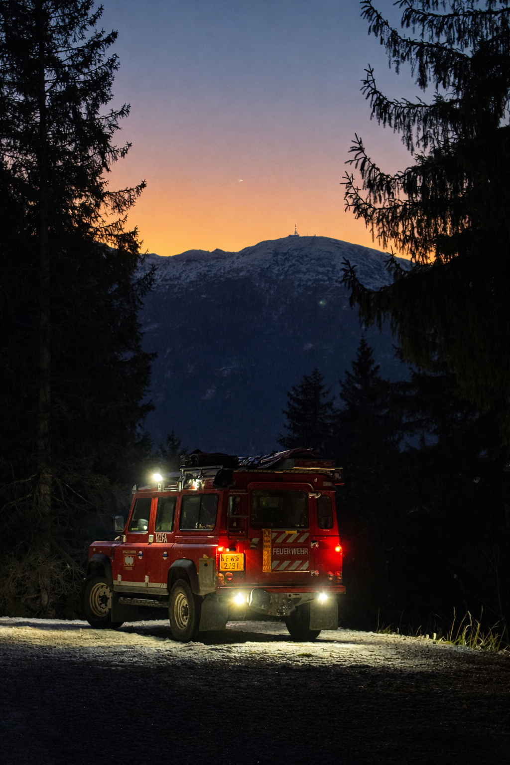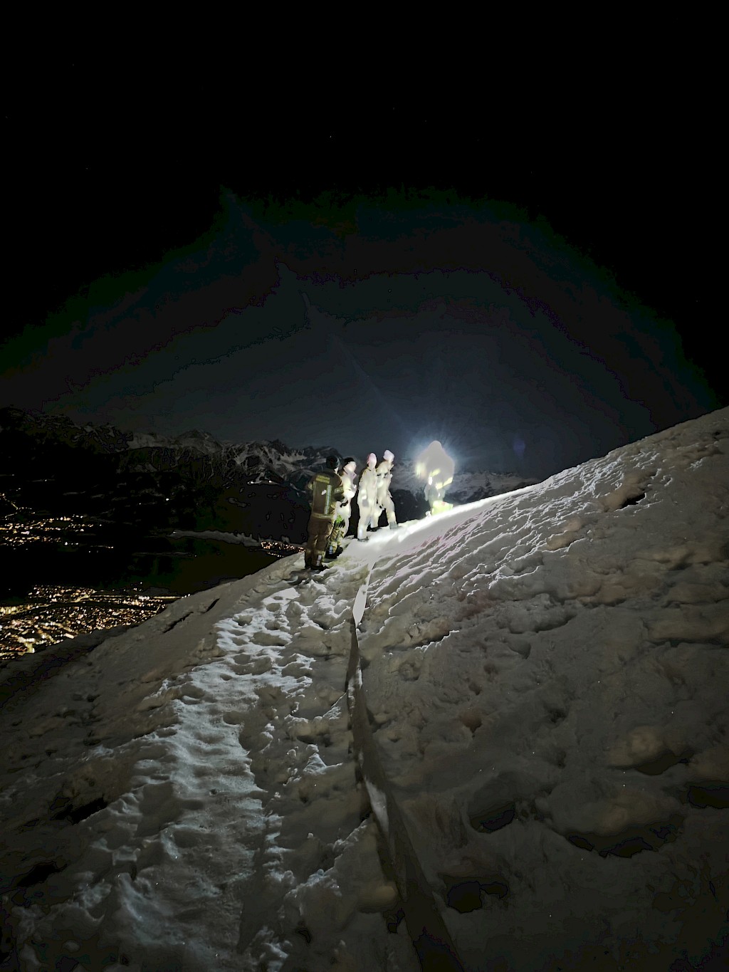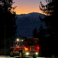 Auf der Seegrube kontrollierte unsere BSW Gruppe unterhalb der aufgebauten Löschleitung Richtung Tobel mit der Wärmebildkamera die Wärmepunkte der Feuerwerksreste, ein Landrover den Stadtwald abfuhr und eine weitere Abteilung bei der Hungerburg Bahn Dienst tat.