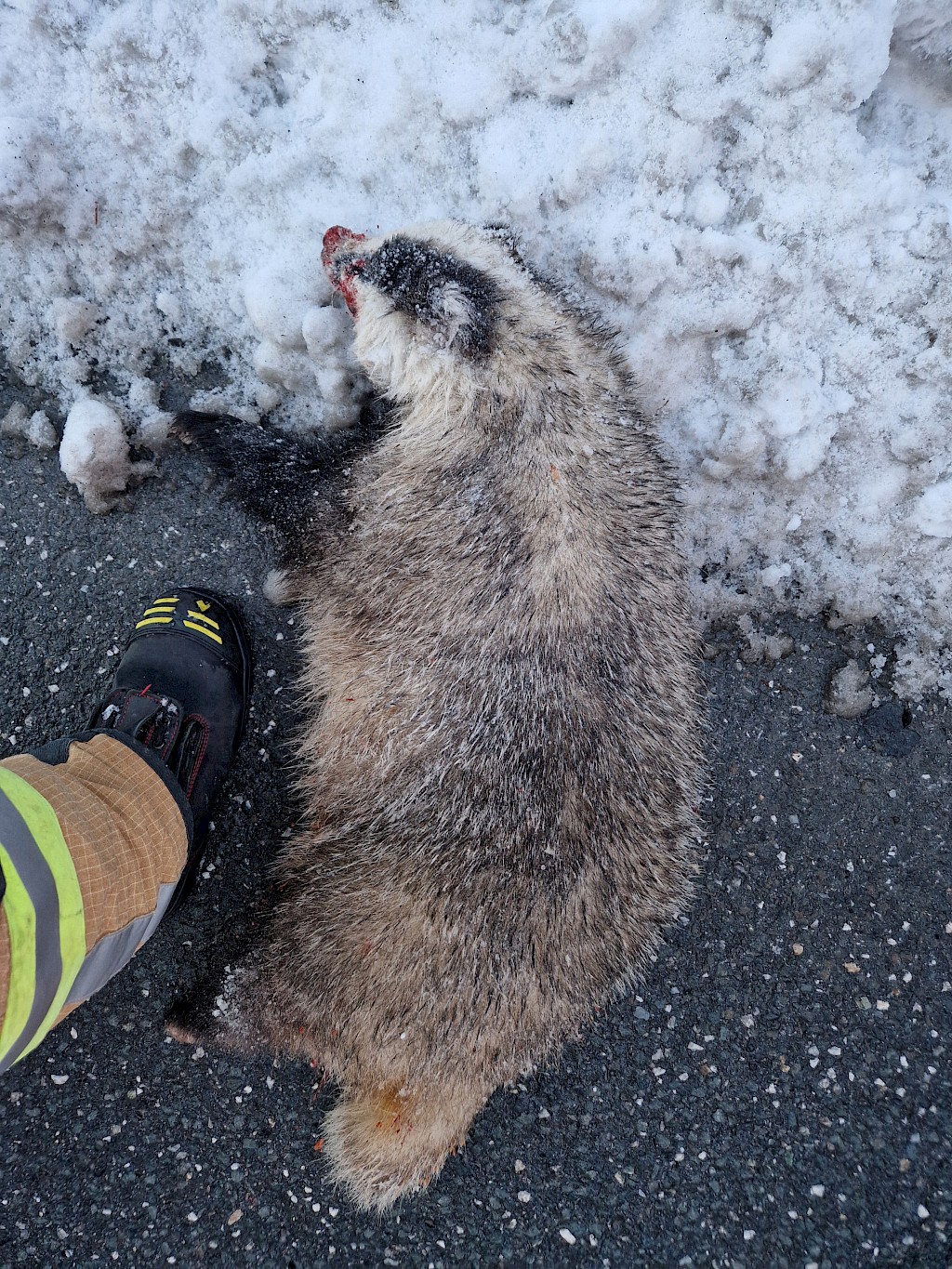 "Unser" Steinbruch Dachs wurde leider totgefahren. Wir reinigten die Stelle, informierten den Aufsichtsjäger und übergaben den Kadaver dem Wasenmeister.