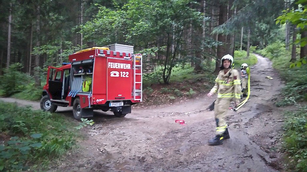 Mit mehreren Gruppen wurde ausgehend von der Hydrantenleitung unterhalb der Nordkettenbahn eine pumpenunterstützte Relaisleitung Richtung Kreuzbründlweg gelegt. Zum Problem wurde, dass der Hydrant, der an nächsten gelegen war, durch Fremdeinwirkung unbrauchbar war und die nächstgelegende Wasserentnahmestelle die vorhandene Mengenkapazität an Schläuchen weit überstieg. Die wertvollen Erfahrungen in Bezug auf Druckverlust durch Höhe, Zusammenarbeit und die Schulung der Befehlsgebung waren die positiven Ziele der Übung. Wie auch die Geländegängigkeit des/der Landrovers einen problemlosen Transport von Geräten/Pumpen und Mannschaft in schweres Terrain überhaupt ermöglichten.