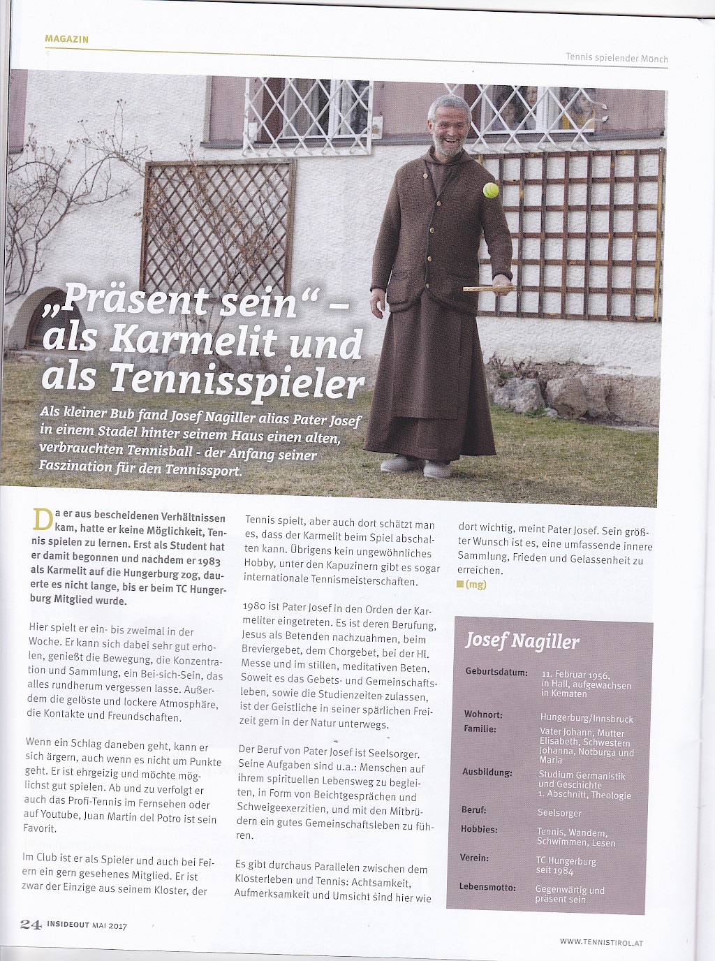 Seine Tennisleidenschaft ist aber nur Insidern bekannt- in einem Artikel des Tiroler Tennis- Magazin "inside out" Nr. 16 wird dies nun den Tennisfans in einem detailliertem Artikel zur Kenntnis gebracht.